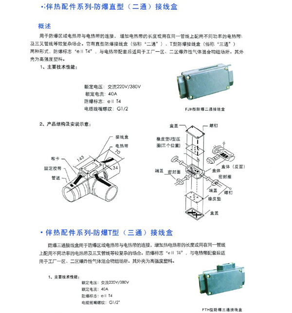 • 產(chǎn)品名稱:伴熱配件系列—防爆直型(二通)接線盒